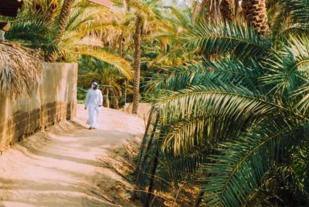 Stroll through the shaded walkways and reconnect with nature at Al Ain Oasis, a tranquil sanctuary spanning 1,200 hectares in the “Green City” of Al Ain. Just a 90-minute drive from Abu Dhabi, this lush oasis offers a refreshing escape from the desert landscape, surrounding visitors with serene pathways, cooling greenery, and centuries-old traditions.